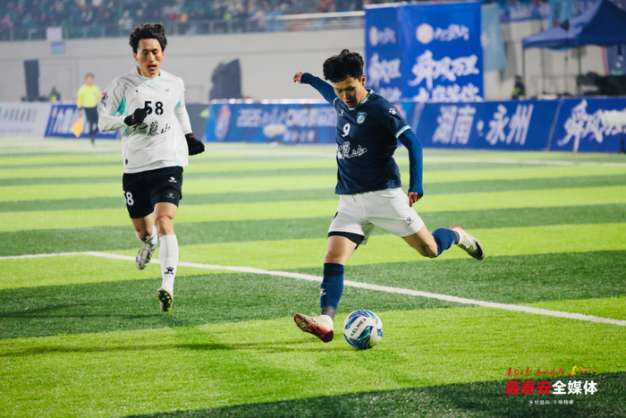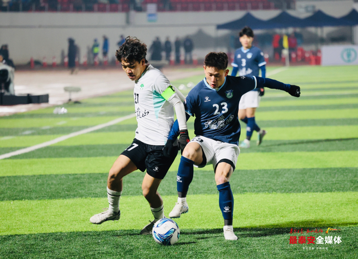 比赛第38分钟,阿力45度送出精准传中,严逸聪门前垫射稍稍偏出球门,泰安队错失扩大领先良机。